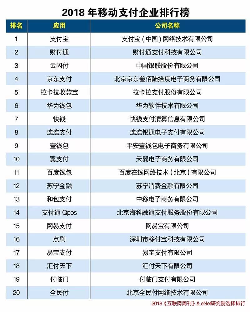 2018年最新中國(guó)移動(dòng)支付企業(yè)排名榜揭曉!