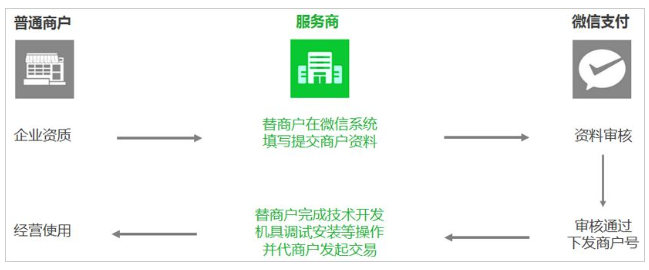 但官方服務(wù)商是有技術(shù)門檻的,以微信支付服務(wù)商服務(wù)商為例,微信支付服務(wù)商是指由微信支付審核且簽約合作的,有一定技術(shù)能力的第三方開發(fā)者。服務(wù)商可為所拓展的特約商戶完成支付申請、技術(shù)接入、活動營銷等全生態(tài)服務(wù)。
