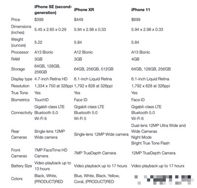 文章來源:四九八網(wǎng)絡(luò)發(fā)布時間:2020-04-26 09:45:48熱度:1494原標題:對比iPhone XR/11 iPhone SE的優(yōu)缺點在哪里